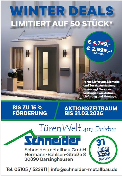 Für mehr Info nutzen Sie bitte den folgenden Link, oder besuchen Sie mit vorheriger Terminreservierung unsre Ausstellung in Barsinghausen >>>>>> 4-Seiter_Haustüren_Winter_Deals_bis 03.2026.pdf